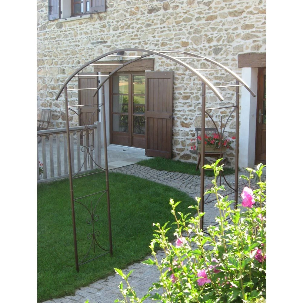 Arche double pour rosiers et plantes grimpantes. Style à l’ancienne, coloris fer vieilli. Revêtement peinture Epoxy. Montage rapide par emboîtage. Finition soignée avec des caches plastiques aux extrémités de la voute.