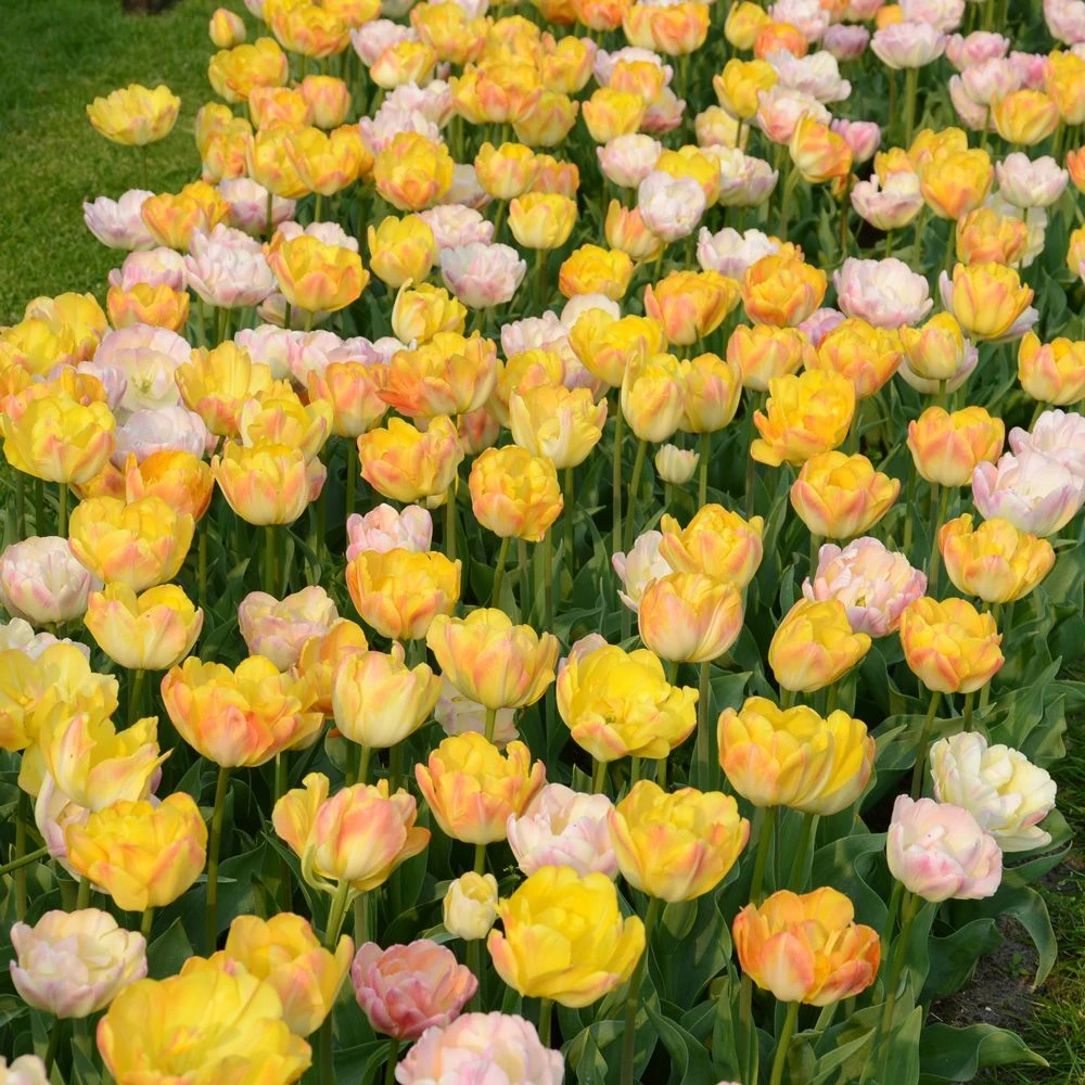 - 50 % de tulipes doubles Foxy Foxtrot rose abricoté pastel nuancé de jaune