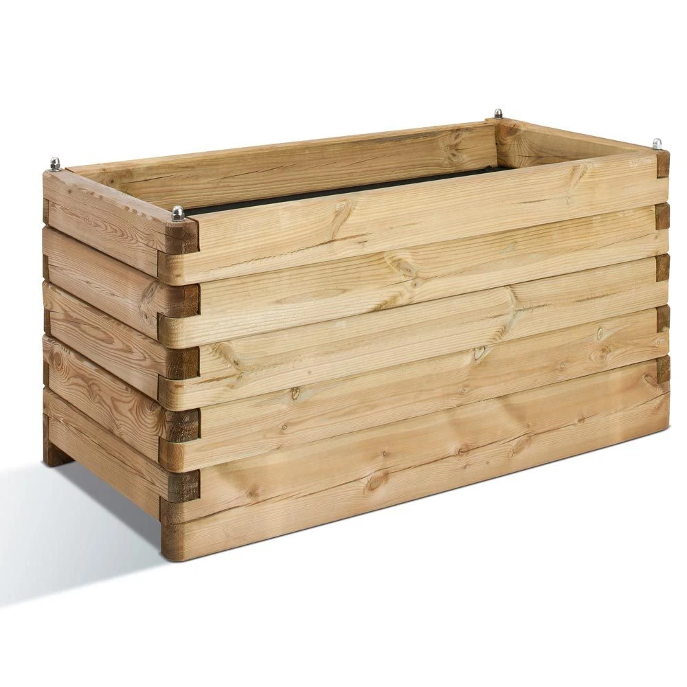 JardiniÚre de grand volume fabriquée en pin européen. Le traitement par autoclave de classe 3 et son assemblage par tige filetée lui garantissent robustesse et stabilité. Convient particuliÚrement à la culture des arbustes de petite taille (buddleia nain, weigelia nain), des plantes vivaces et annuelles.