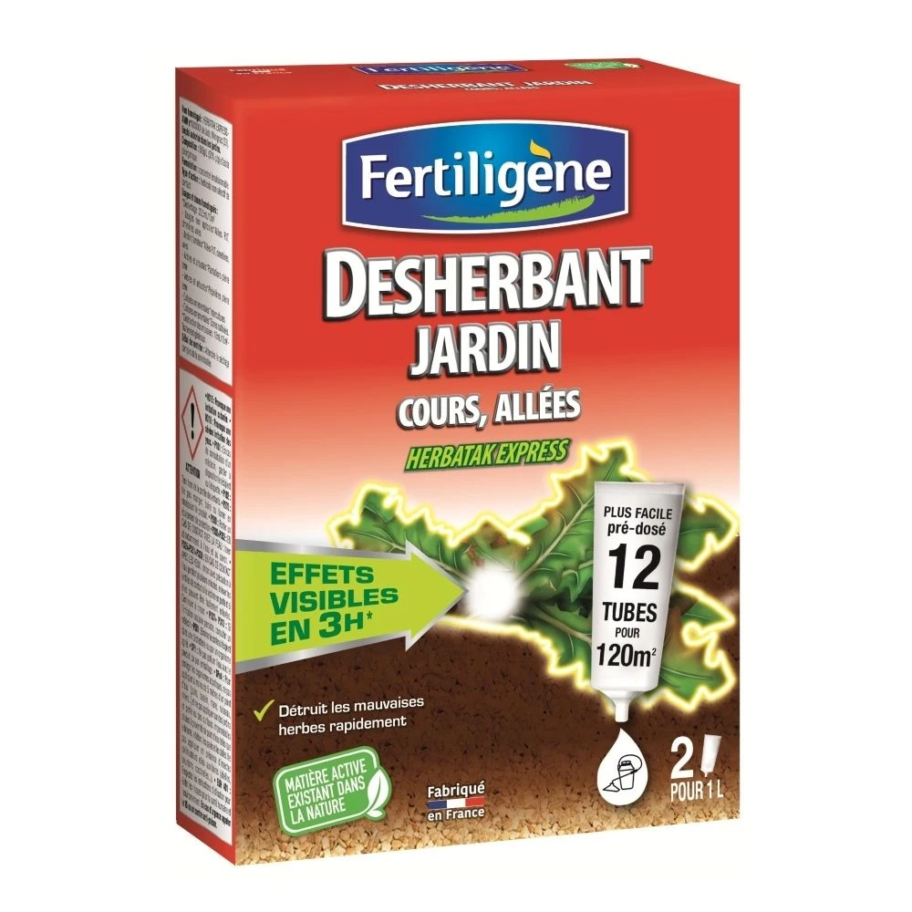 A base d’acide pélargonique concentré, une matière active présente dans la nature, ce désherbant particulièrement efficace détruit rapidement les mauvaises herbes par simple contact. Les premiers effets sont visibles en 3h. Emploi. HERBATAK EXPRESS – AMM : 2170243 de JADE, (59) – 500 g/L (51,9% p/p) d’acide pélargonique ATTENTION : provoque une irritation cutanée et une sévère irritation des yeux.