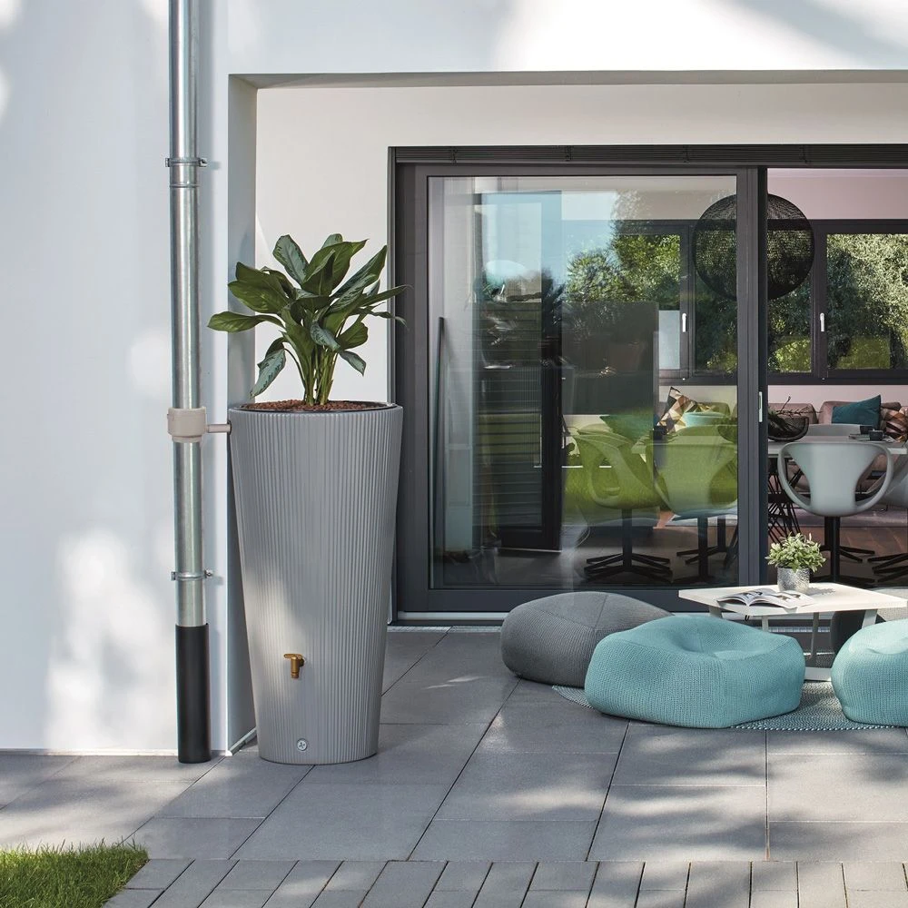 Avec son design contemporain et son faible encombrement, le réservoir d’eau 2 en 1 Linus récupère en toute discrétion jusqu’à 220 litres d’eau de pluie. Son aspect pot moderne est encore renforcé par le bac à plante amovible dans lequel vous cultiverez de jolies fleurs retombantes par exemple.
