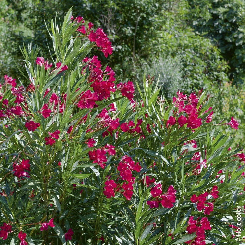 Coloris intense et feuillage persistant. Typiquement méditerranéen, le laurier-rose Émile Sahut, nommé en latin Nerium oleander, vous dépayse par son abondante floraison estivale rouge velouté légèrement parfumée. Vigoureux, résistant et rustique (-8°C), il pousse aussi bien en bac qu’en pleine terre, en compagnie d’autres incontournables du bassin méditerranéen comme l’olivier, les agrumes, les agapanthes, etc.