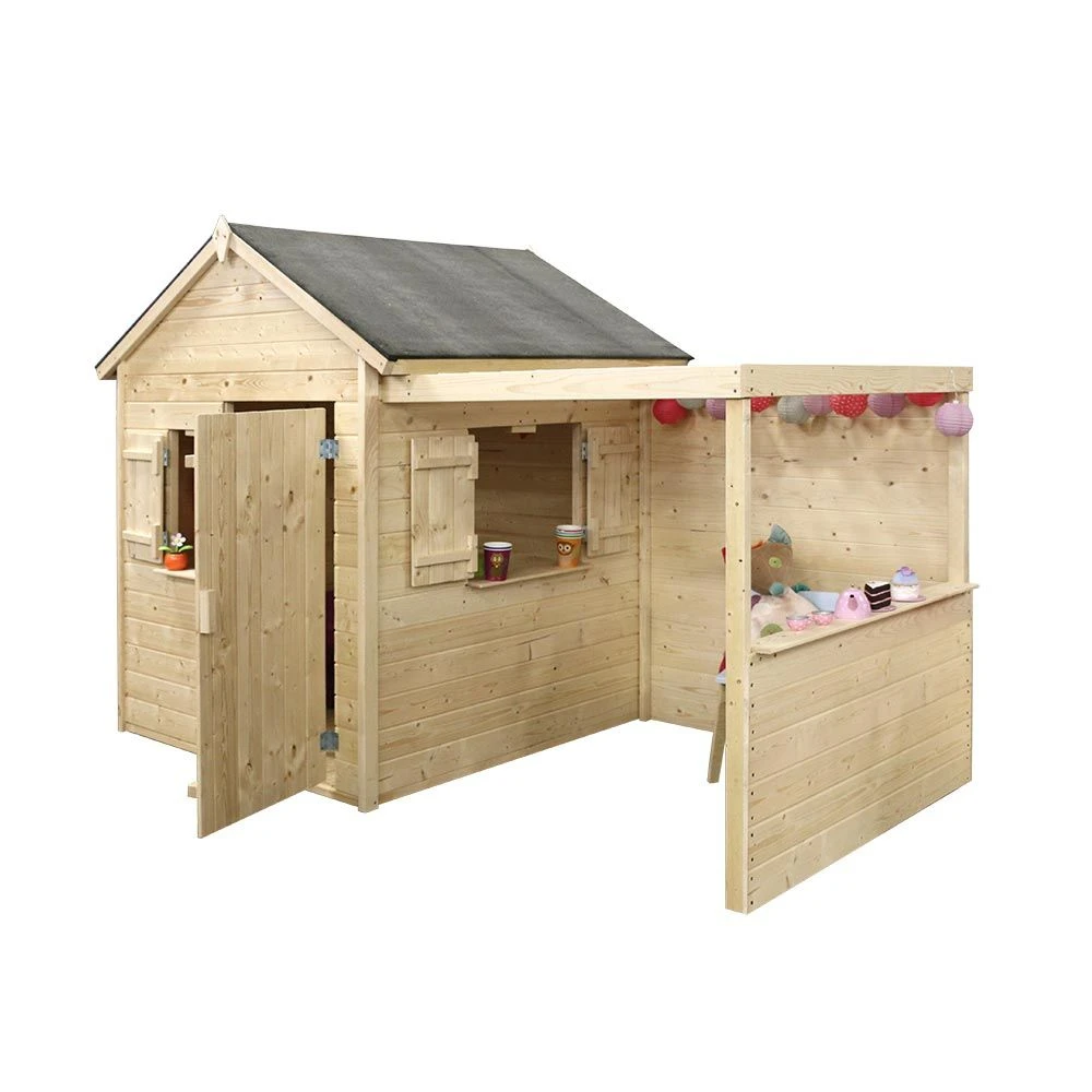Grand modĂšle : cabane + pergola ! Plus de 3 mÂČ de jeu ! Une version XXL pour un espace de jeu intĂ©rieur + extĂ©rieur. Pergola couverte avec une toiture type brise soleil (possibilitĂ© de poser une couverture polycarbonate et de la fixer). Montage facile et personnalisation. Façades prĂ©montĂ©es. A peindre ou lasurer selon vos envies.