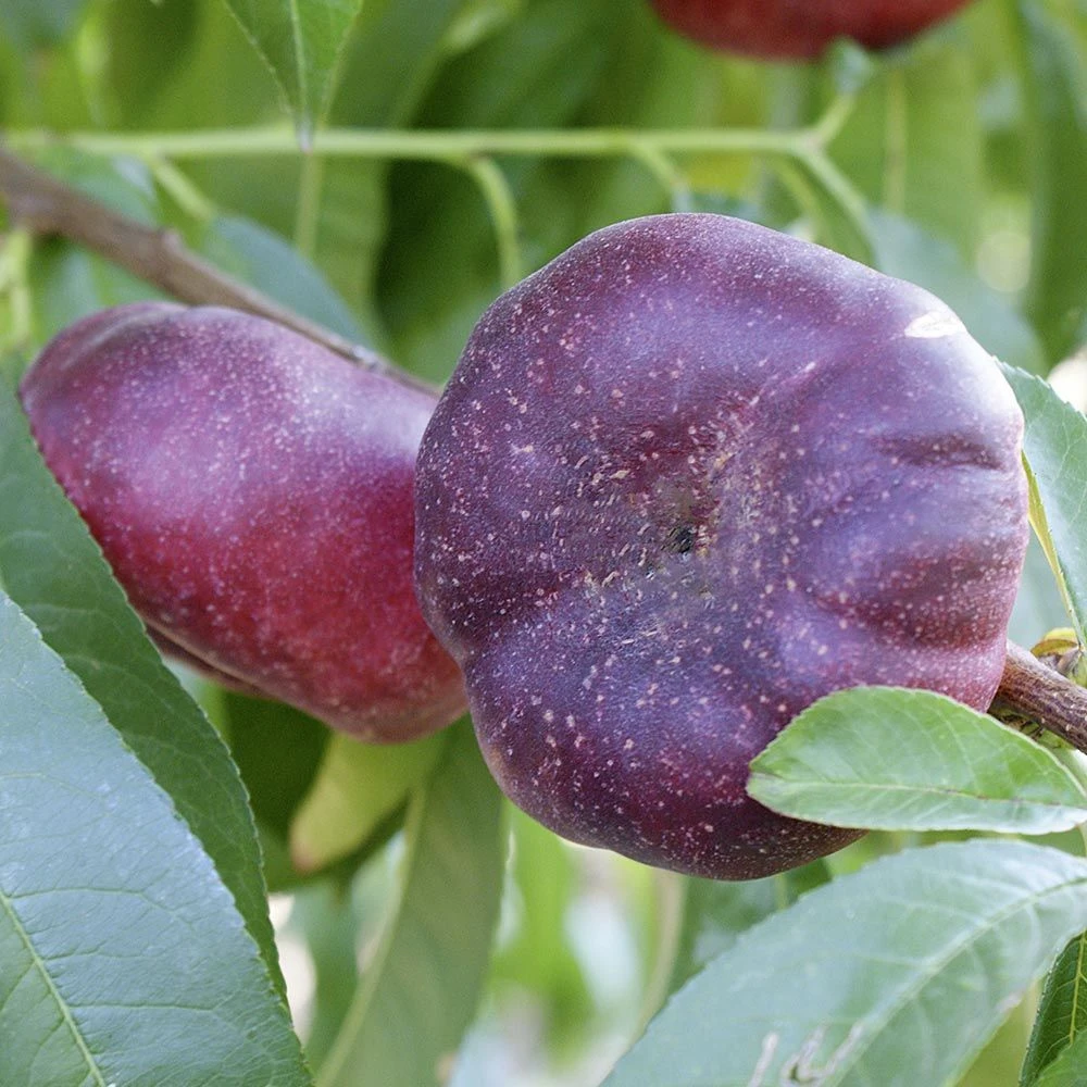 De mise à fruit rapide, cette nectarine plate a un épiderme rouge orangé à rouge foncé sur un fond jaune orangé. La chair fine, sucrée et parfumée est juteuse et reste ferme. Le nectarinier Mesembrine est une variété autofertile, arrivant à maturité fin août. Mise à fruits 1 à 2 ans après plantation.