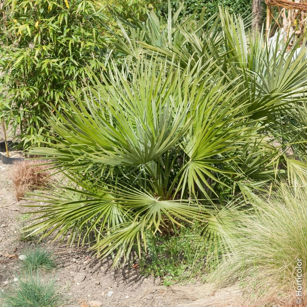 Ainsi, le palmier nain Chamaerops humilis ‘Compacta’ pousse en touffe dense fréquemment composée de plusieurs stipes (pseudo-troncs) couverts de fibres. De croissance lente, il ne dépasse pas 1,5 à 2 m de hauteur pour une envergure de 2 à 3 mètres en pleine terre. Ses palmes en forme d’éventail sont d’un beau vert franc et leur tige est munie de petites épines acérées.