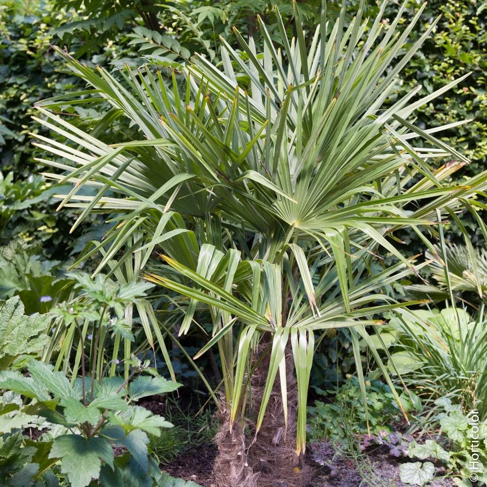 Originaire du bassin méditerranéen où il pousse du bord de mer jusque dans les garrigues, le palmier Chamaerops humilis prospère en sols bien drainés, même secs et calcaires, en plein soleil. Il est rustique jusqu’à -10°C, ponctuellement -12°C en sol bien drainé. Comme il est capable d’émettre des rejets, une plante gelée peut repousser du pied au printemps.