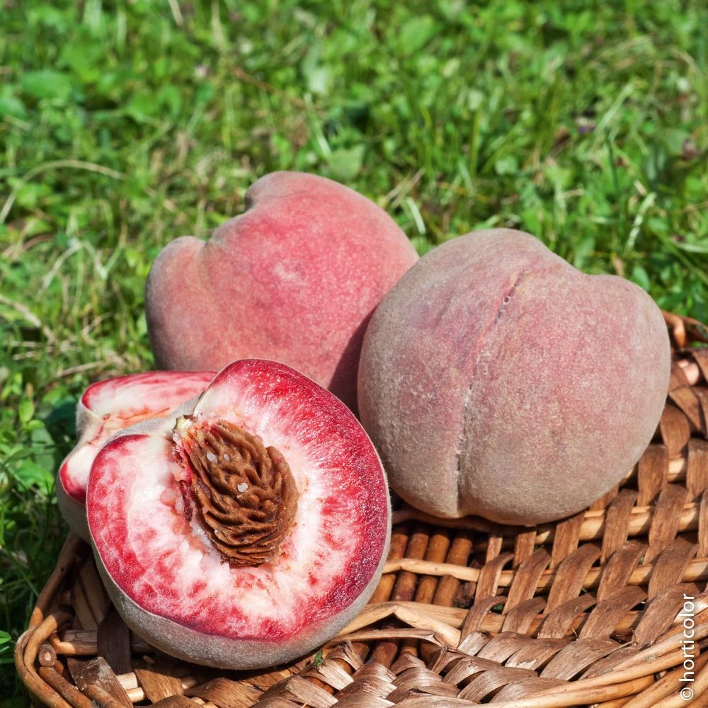 Pêcher produisant d’excellents fruits à chair juteuse de couleur rouge sang. Des pêches idéales pour faire des compotes et des confitures. Maturité début septembre/mi-septembre. Variété autofertile, mise à fruits 1 à 2 ans après plantation.