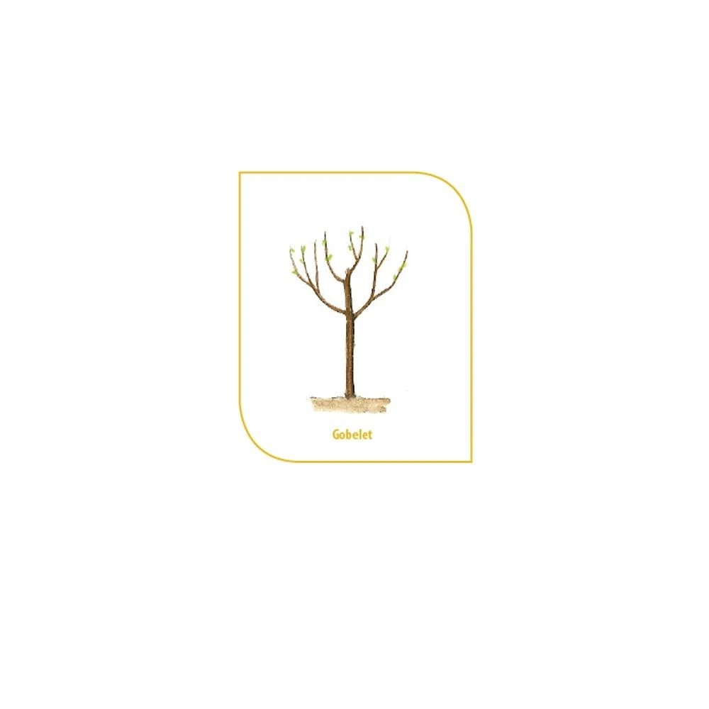 - Le Gobelet : petit arbre de 3 ans (dont 2 ans de greffe). Tronc court de 50/60 cm entre les racines et les premières branches (hauteur définitive). 3 à 5 branches de 20 à 40 cm de long, à retailler court au printemps suivant plantation. Idéal pour les petits espaces. Nos conseils pour les fruitiers en gobelet par ici