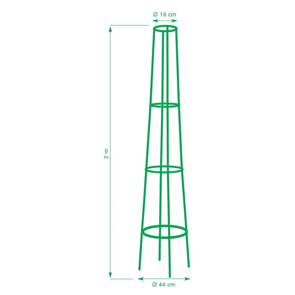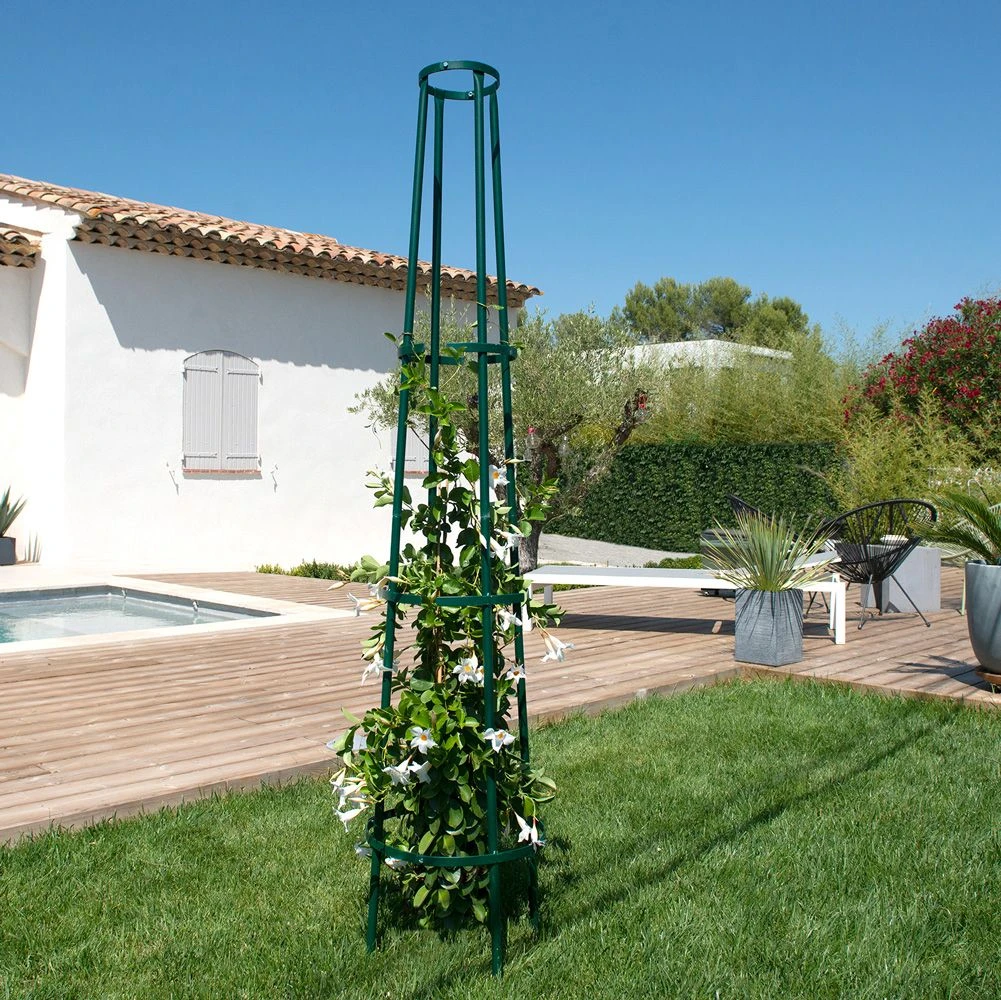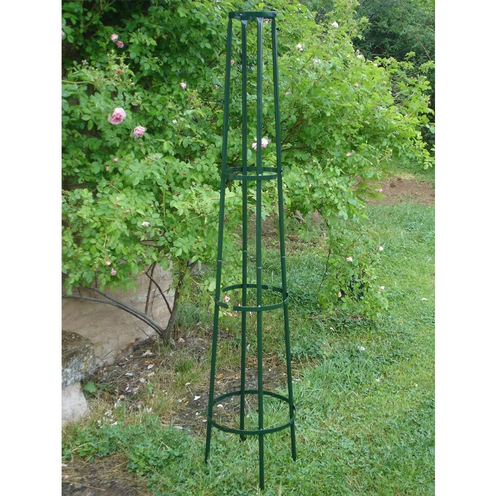 Tuteur colonne corset pour le palissage des rosiers grimpants. Montage rapide par vis et emboĂźtage (visserie fournie). La conception “Corset” permet l’installation aprĂšs la plantation du rosier, sans risque d’endommagement du vĂ©gĂ©tal. Ossature tube : diamĂštre 20 mm et fer plat, vert acier Ă©poxy anti-rouille.